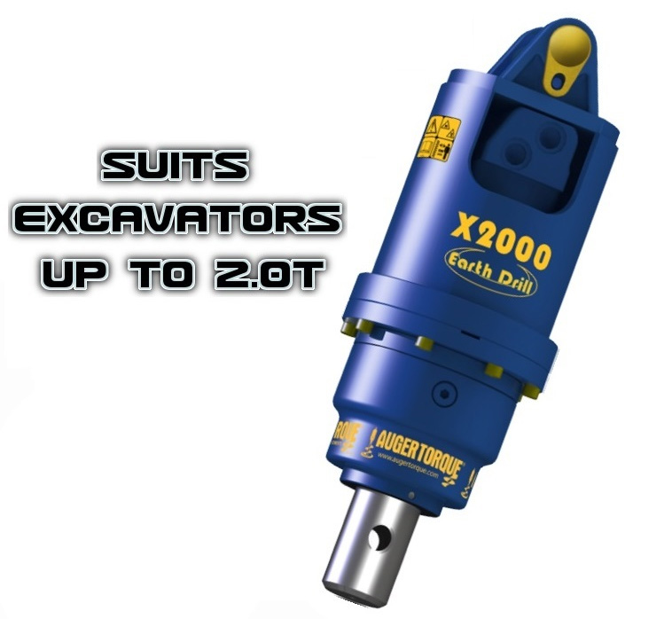 The Auger Torque Earthdrill X2000 is an auger drive unit designed for mini excavators ranging from 1.0 to 2.5 tonnes and is ideal for post hole digging.